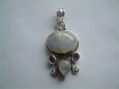 Rainbow Monnstone with facet amethyst Indian Silver pendant 3.5-4cm. 548