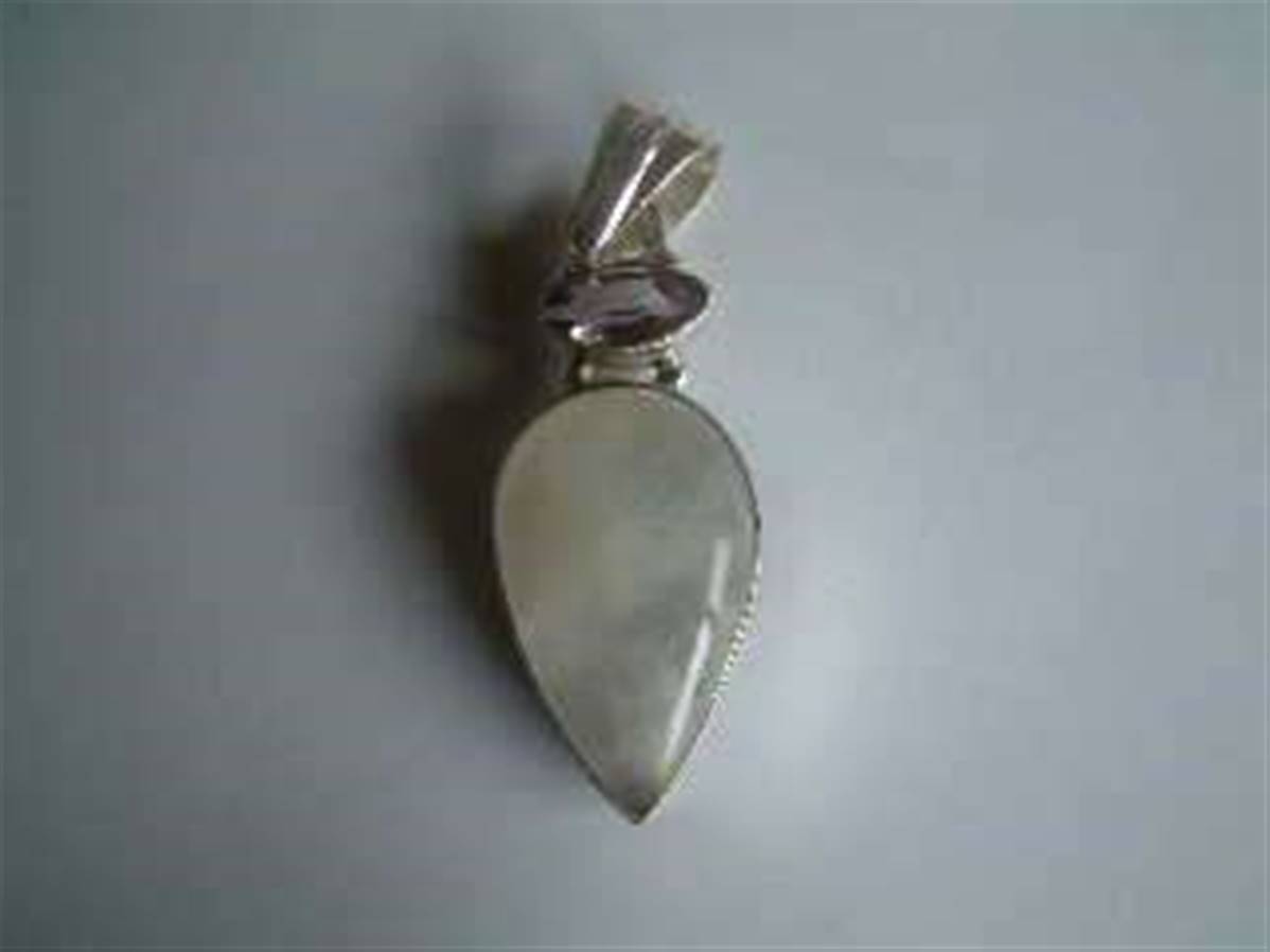 Rainbow Moonstone with facet amethyst Indian Silver pendant 3.5-4cm. 469