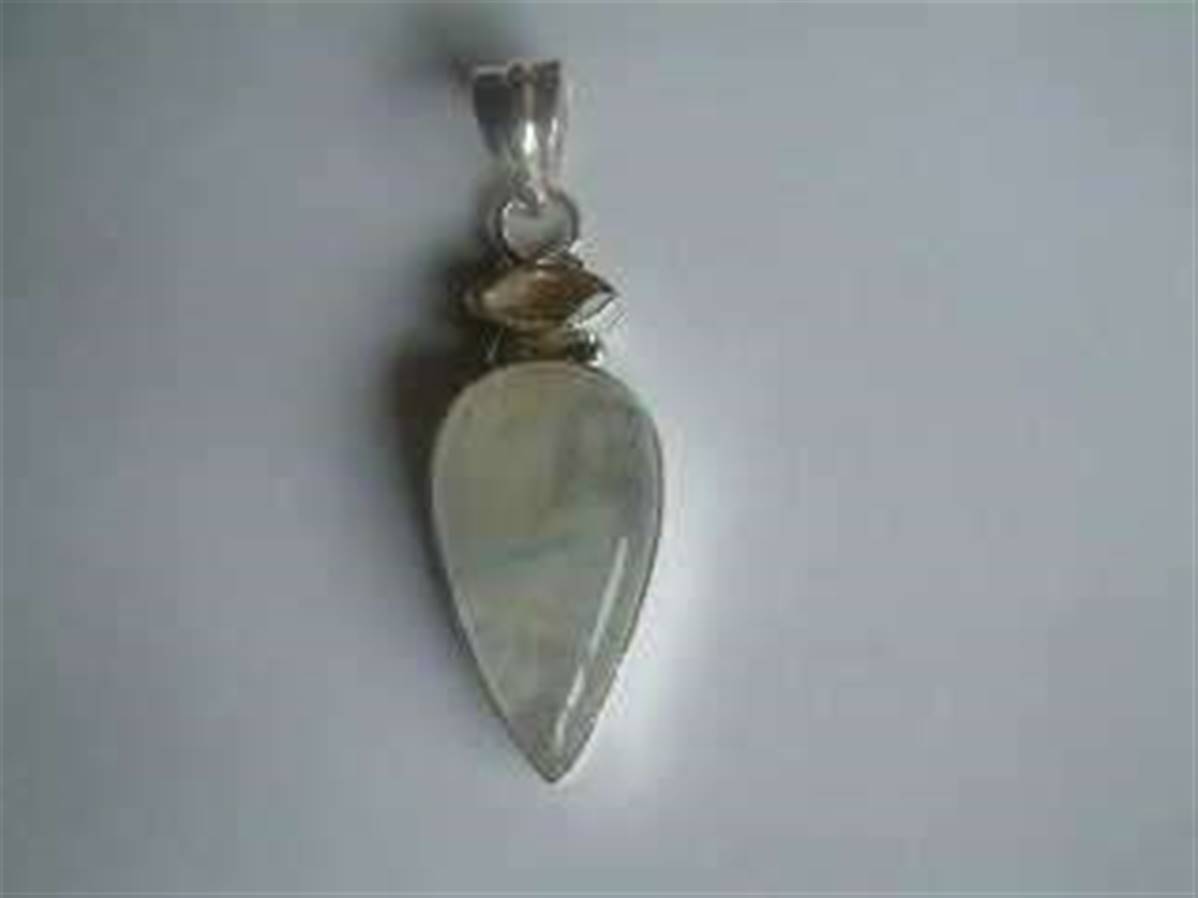Rainbow Moonstone with facet citrine Indian Silver pendant 3.5-4cm. 456