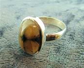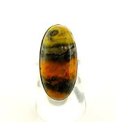 | | 925 SILVER RING FEATURING A DOME POLISHED OVAL CABOCHON IN BUMBLE BEE JASPER.