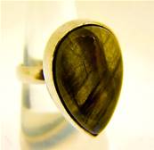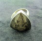 | | FEATURING A LARGE FREEFORM DOME POLISHED CABOCHON IN RUTILATED QUARTZ. RING SIZE = R WEIGHT = 15g. SIZE OF CABOCHON = 26MM X 21MM. |