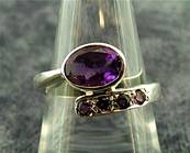 | | THIS RING FEATURES A LARGE FACETED OVAL SHAPE AMETHYST CABOCHON & FOUR SMALLER ROUND FACETED AMETHYST CABOCHONS. RING SIZE = M SIZE OF CABOCHONS = OVAL - 8MM X 6MM. ROUND - 2MM IN DIAMETER. WEIGHT = 4g.