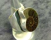 | THIS RING FEATURES A FOSILISED AMMONITE. SIZE OF AMMONITE = 24MM ACROSS. WEIGHT = 11g. |