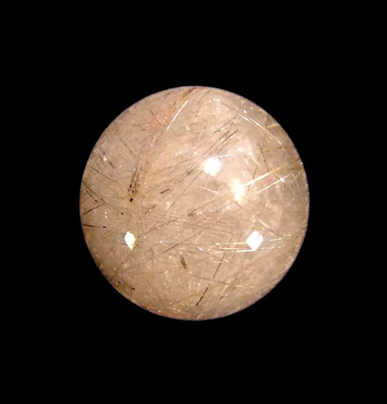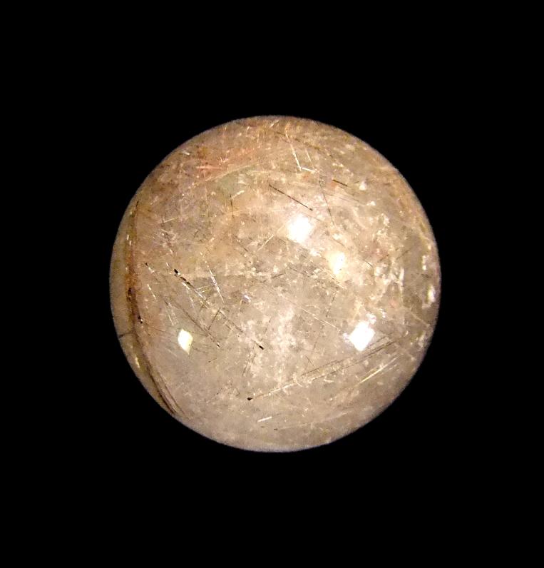QUARTZ SPHERE FEATURING SILVER RUTILE INCLUSIONS.