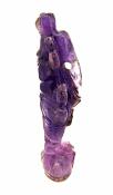 | | GEMSTONE CARVING OF HOWLING MOON WOLF IN AMETHYST.
