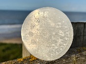 | | SELENITE / SATIN SPAR ROUND OHM ETCHED CHARGING PLATE.