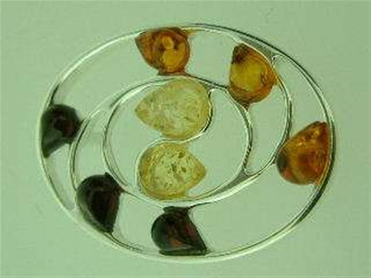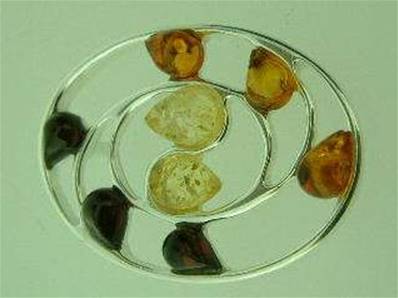 SILVER CELTIC SHEILD STYLE THREE TONE AMBER PENDANT.