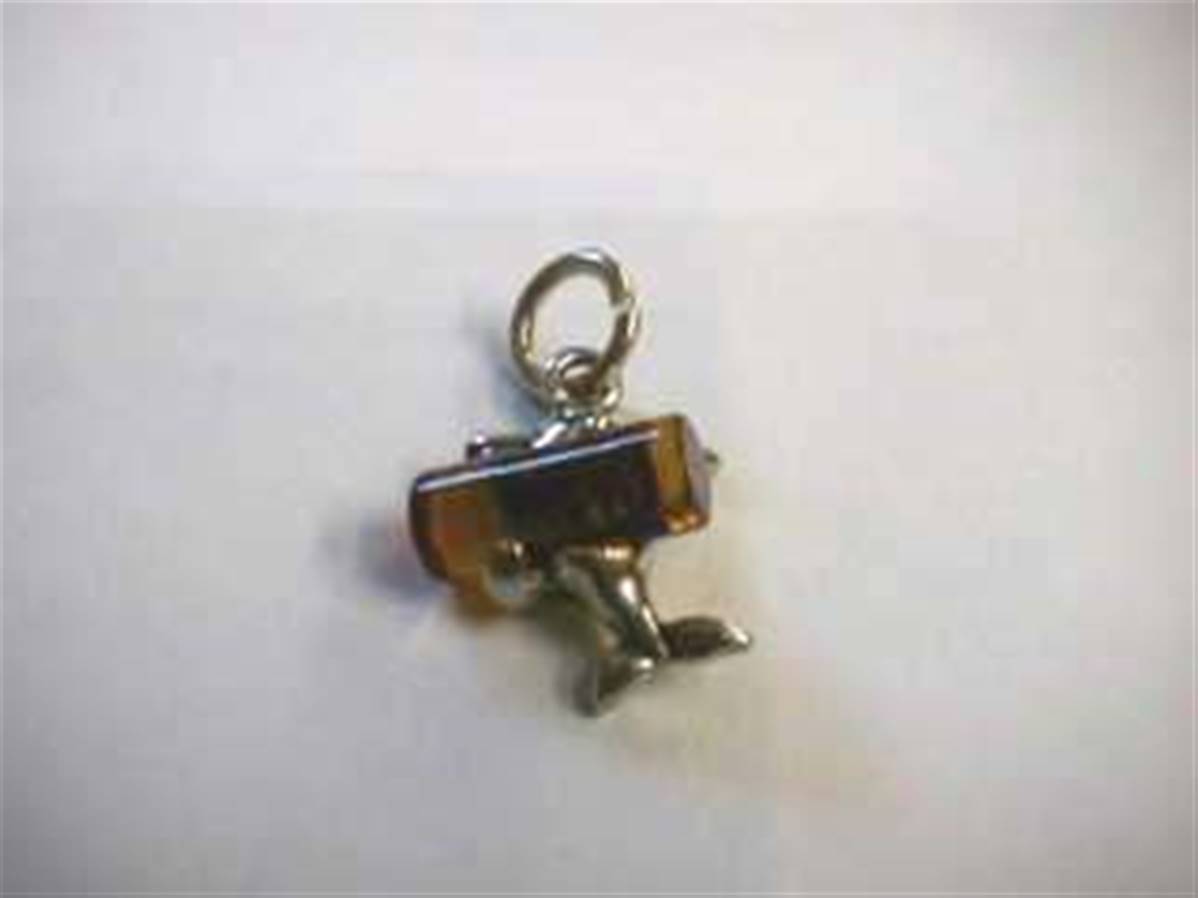A charmingsilver dolphin "holding" an amber tube.Length og dolphin appx 2cm