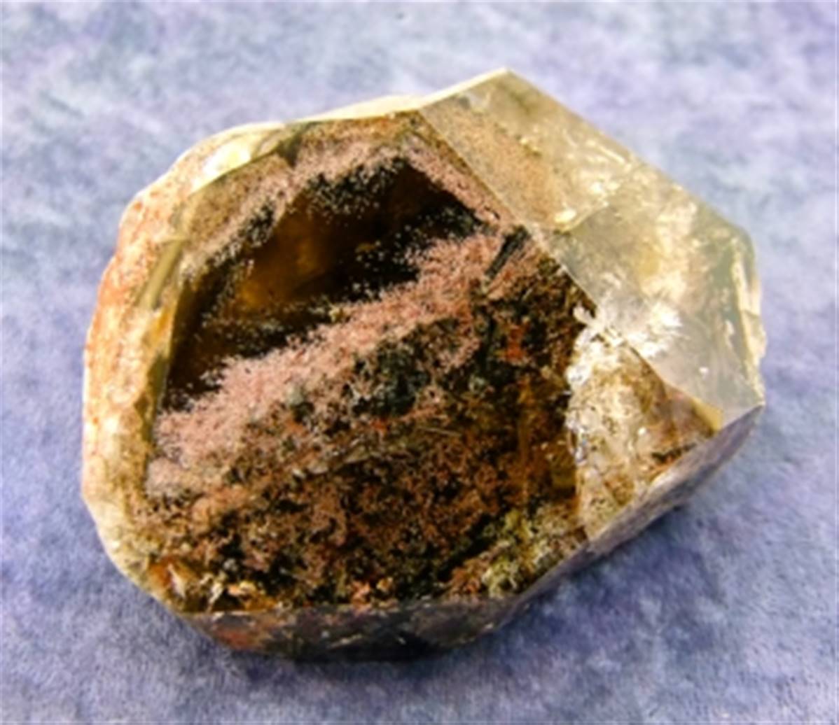 TOP POLISHED SPECIMEN FEATURING IRON HYRATE & BLACK TOURMALINE INCLUSIONS. ORIGINATES FROM BRAZIL.