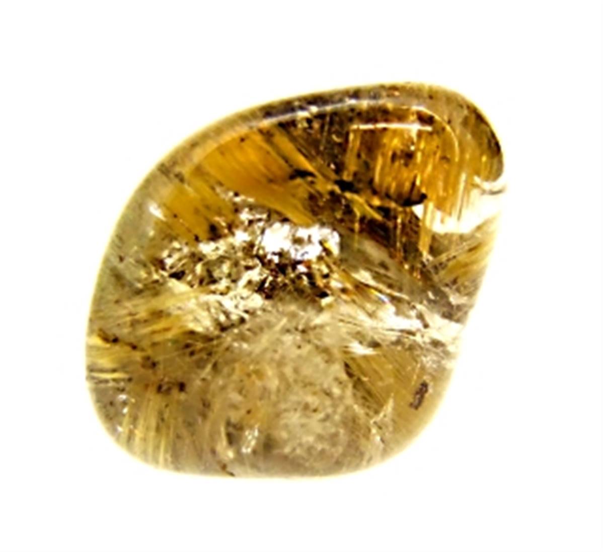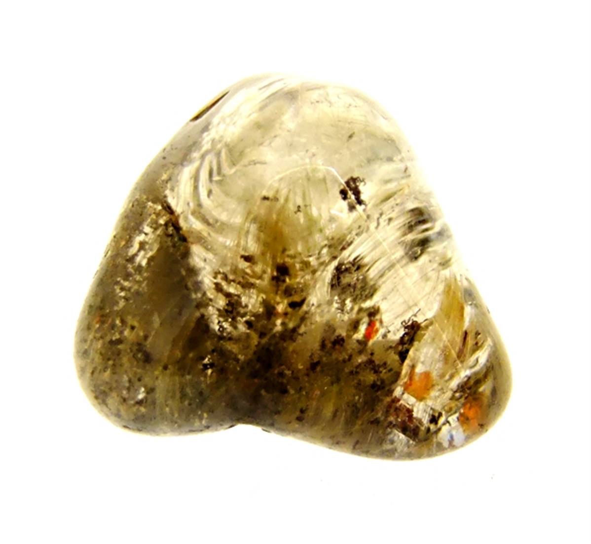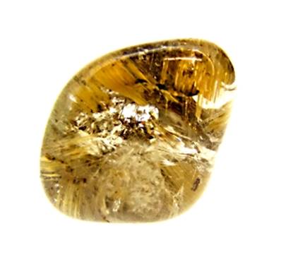 FEATURES GOLDEN & RED RUTILE INCLUSIONS. ORIGINATES FROM BRAZIL.