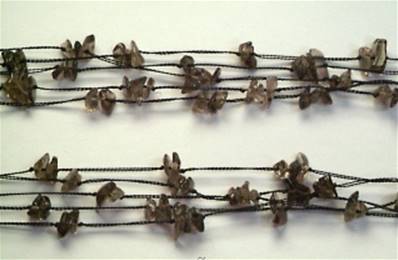 SMOKEY QUARTZ THREADED GEM CHIP NECKLACE. 18" LONG. 16g. SPR1008
