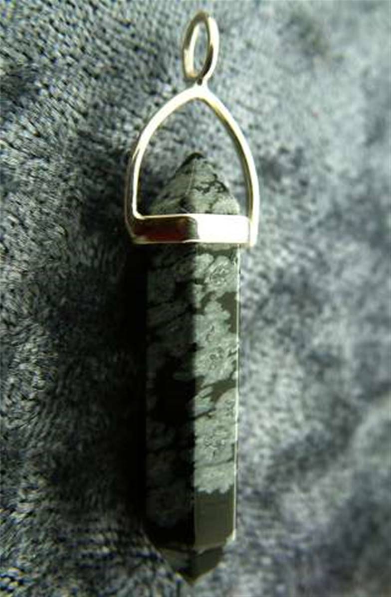 SNOWFLAKE OBSIDIAN CHINESE FACETED HEALING POINT PENDANT. SPR3894