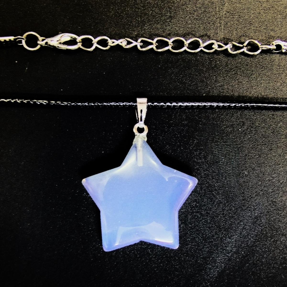 Star Pendant Necklace In Opalite On Waxed Cord Featuring A Lobster Style Clasp.