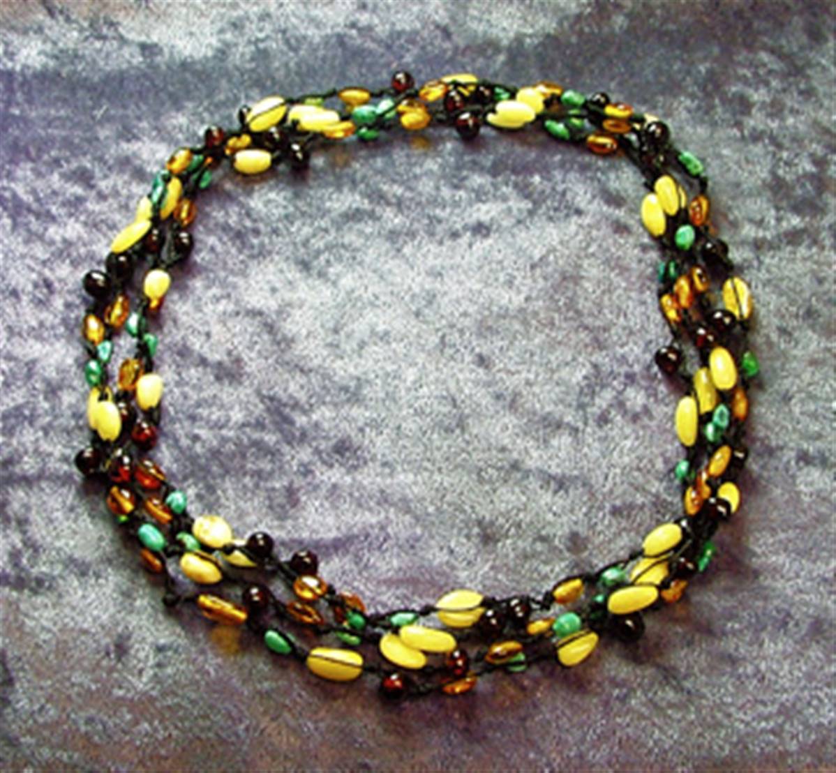 FEATURES THREE DIFFERENT SHADES OF BALTIC AMBER WITH TURQUOISE.