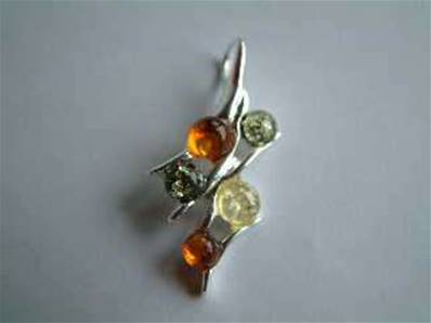 Crafted for us in Gadansk Poland from 925 silver with yellow, gold and green Amber, this contemporary and stylish pendant measures appx 3cm.