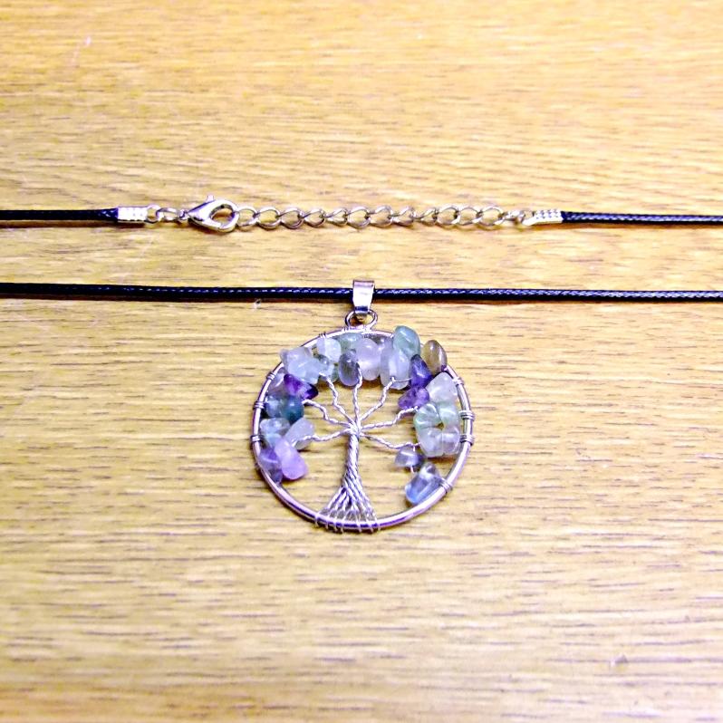 TREE OF LIFE NECKLACE WITH FLUORITE CRYSTALS (SILVER PLATED) 10 PACK.