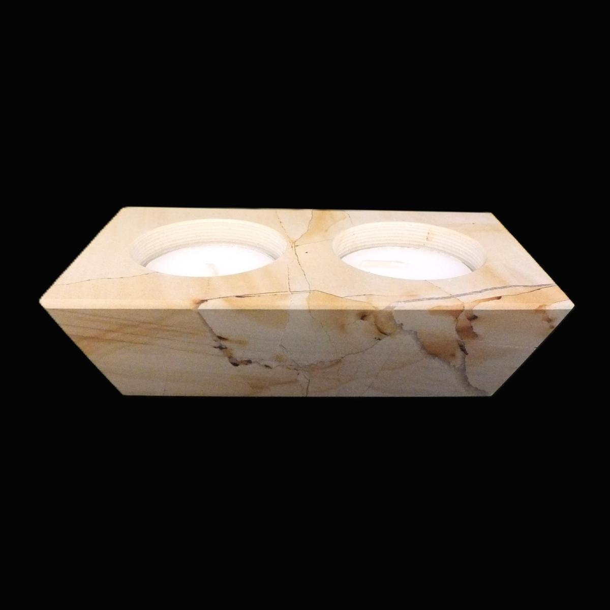 • Twin Hole Tea Light Holder In Burma Teak Marble.   SPR17242POL