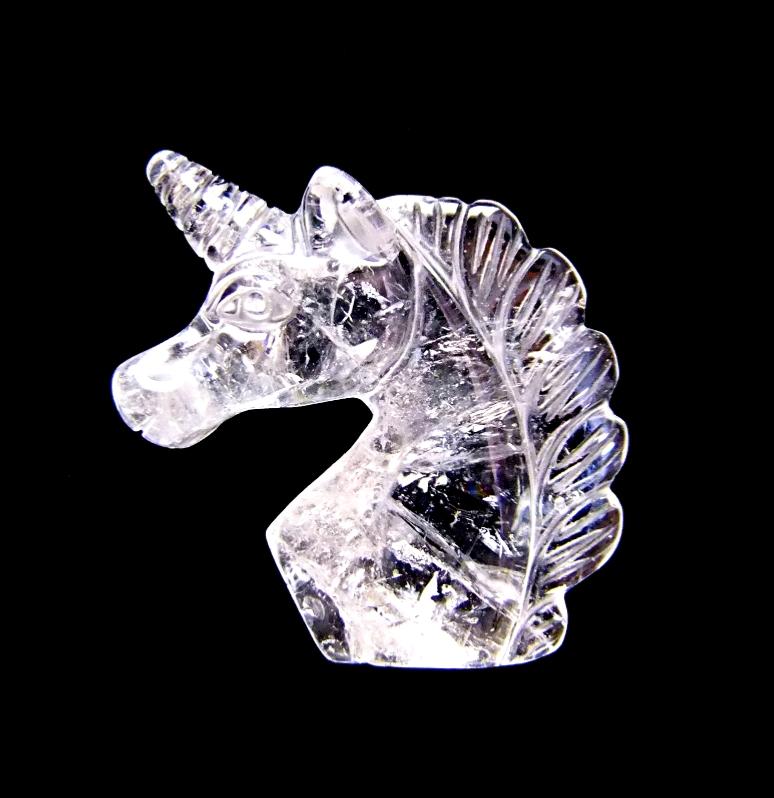 UNICORN HEAD CARVING IN BRAZILIAN QUARTZ.
