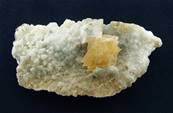 SPECIMEN FEATURES YELLOW CALCITE CRYSTAL FORMATION.