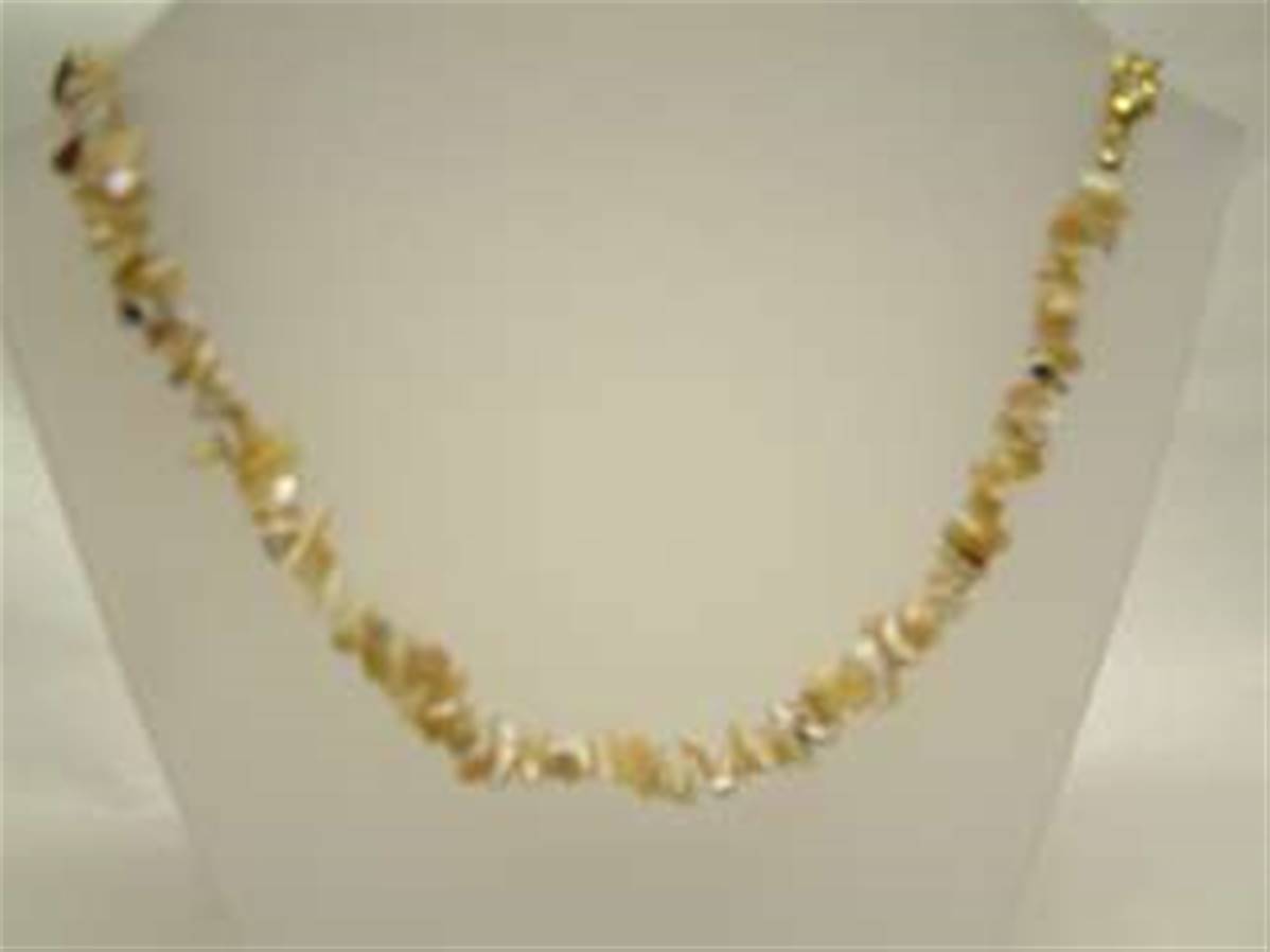 WHITE MOTHER OF PEARL GEM CHIP NECKLACE FEATURING A GOLD PLATED LOBSTER STYLE CLASP (10 PACK). 24" LONG. 30g.
