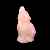 | | GEMSTONE CARVING OF HOWLING MOON WOLF IN ROSE QUARTZ.
