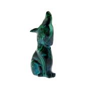 | GEMSTONE CARVING OF HOWLING MOON WOLF IN FLUORITE.