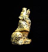 | GEMSTONE CARVING OF HOWLING MOON WOLF IN TIGERSEYE.
