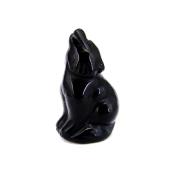 | | GEMSTONE CARVING OF HOWLING MOON WOLF IN BLACK OBSIDIAN.